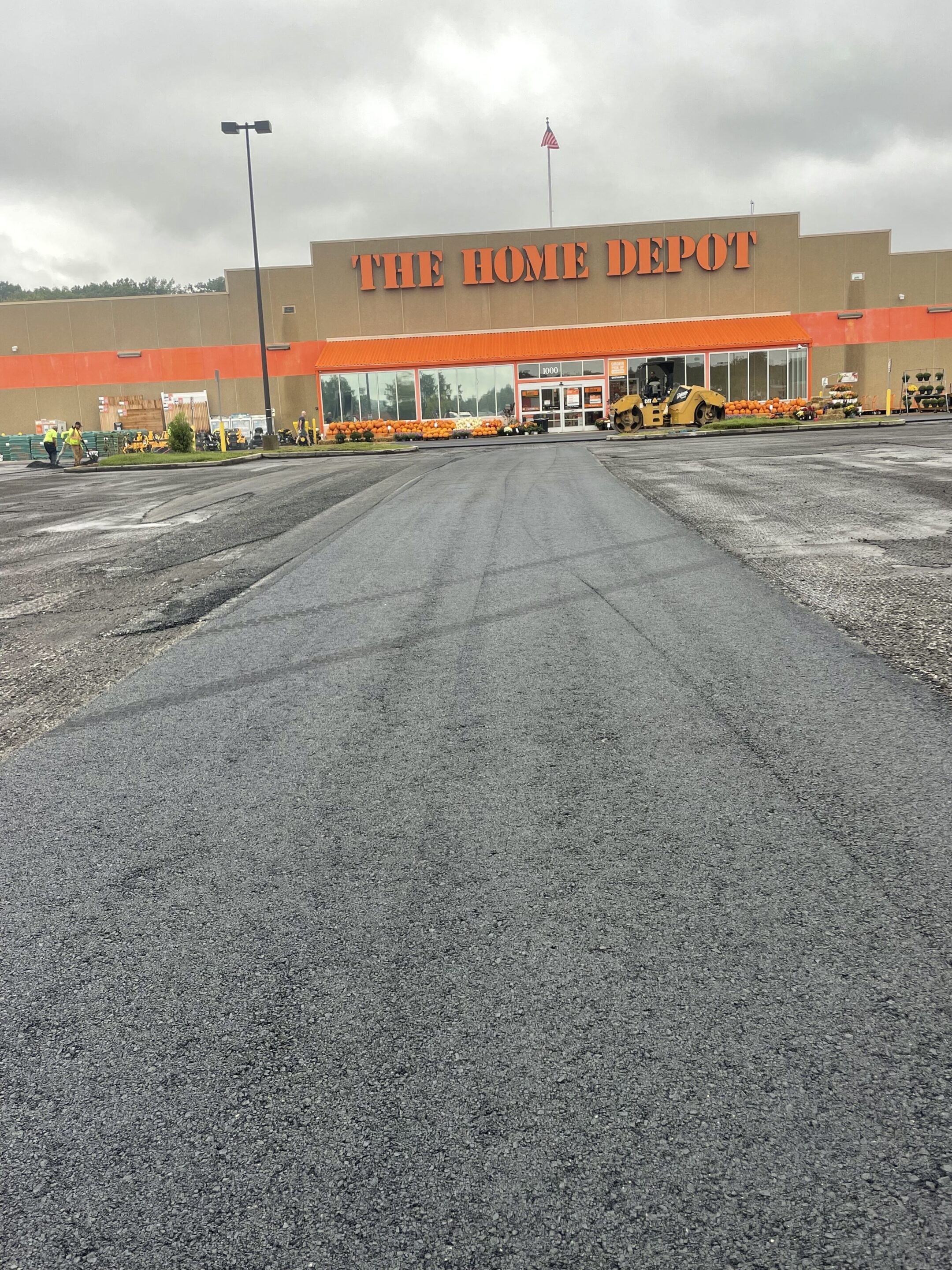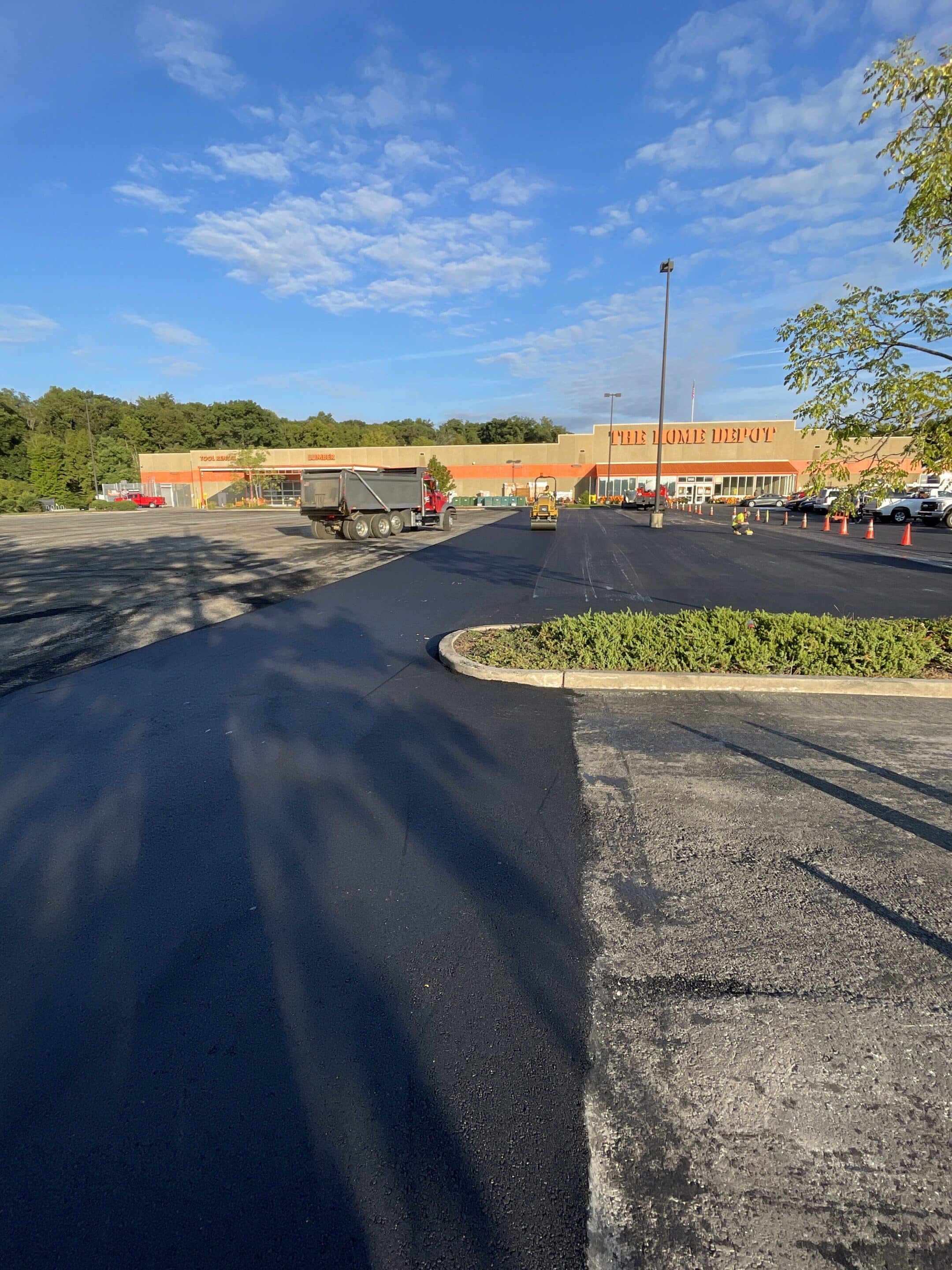 The Delaware Valley Paving Crew repaving a section of asphalt for Home Depot